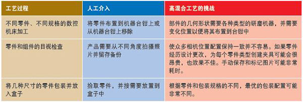 高混合生產(chǎn)環(huán)境可能難以快速改進(jìn)。理想的改進(jìn)將涉及多條生產(chǎn)線,但適應(yīng)多個(gè)工藝所需的投資可能非常大,足以顯著降低投資回報(bào)率。傳統(tǒng)的自動化無疑是大批量或快速循環(huán)生產(chǎn)更有效的解決方案。
